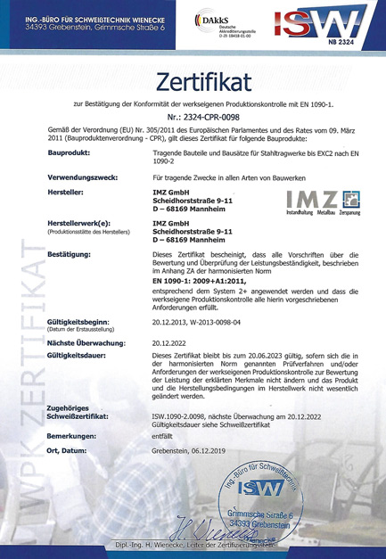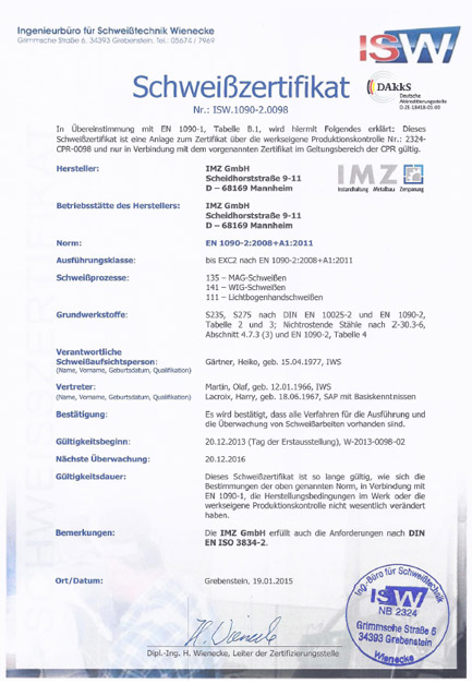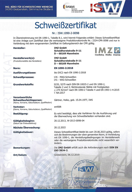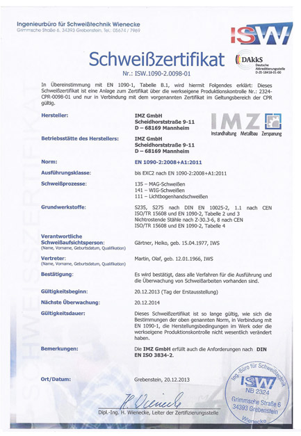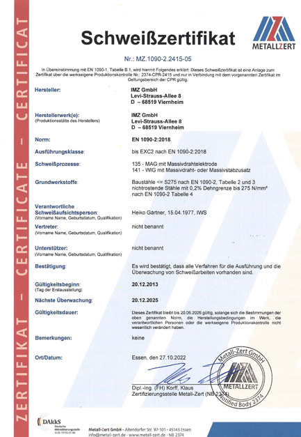 Schweißfachmann / International Welding Specialist seit 2009 mit Zertifikaten und regelmäßigen Schulungen