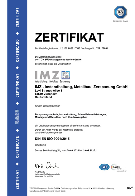Im Jahr 2010 erfolgte die Umfirmierung zur IMZ - Instandhaltung, Metallbau, Zerspanung GmbH. Mittlerweile befindet sich unser Standort in Viernheim.