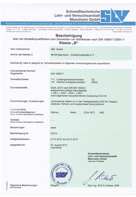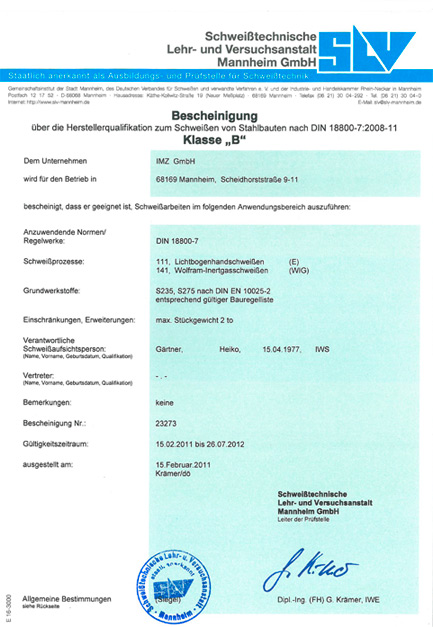 Im Jahr 2009 absolvierte Heiko Gärtner zusätzlich die Prüfung zum Internationalen Schweißfachmann.